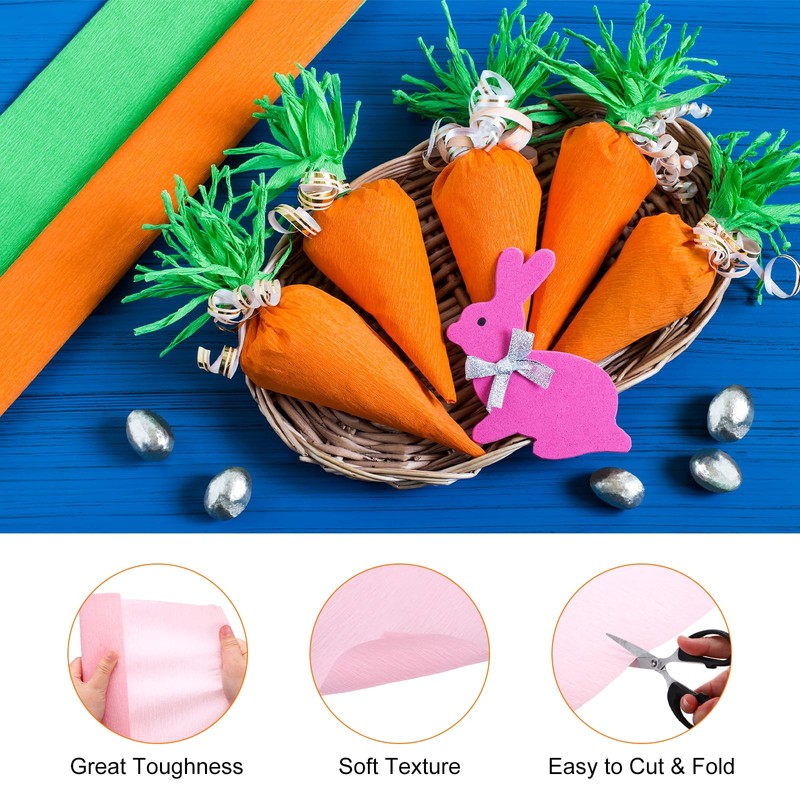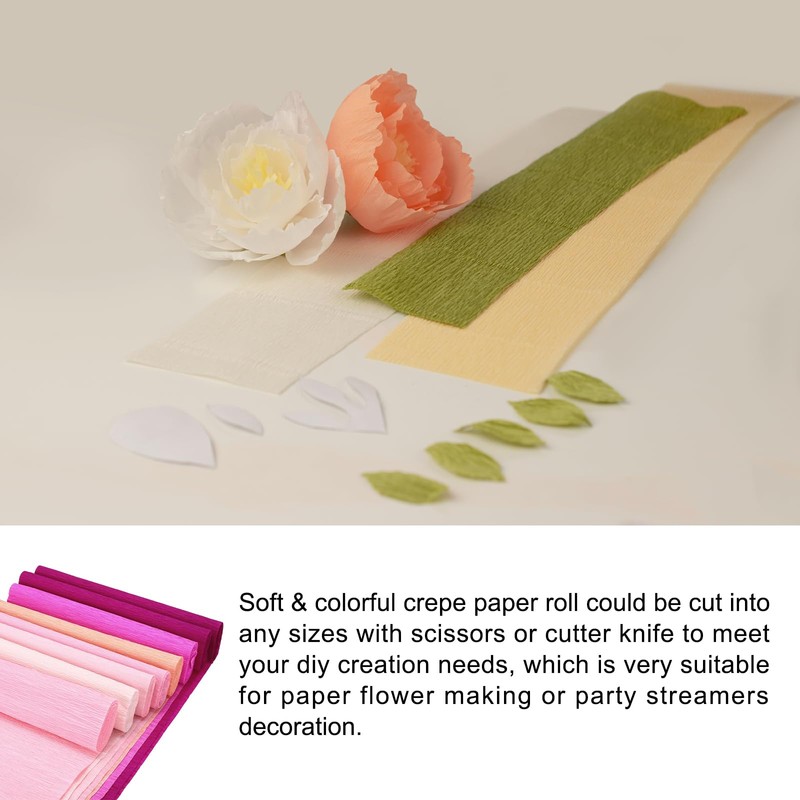 - [Good Feature]: Wide crepe paper sheets are common material for making decorative items, usually with multiple colors that can be freely matched. They are very suitable for DIY art creation, paper flower making, party streamers, gift wrapping, and other scenes.