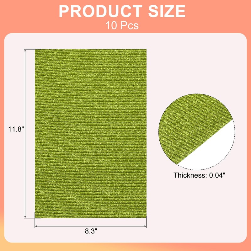 - -[Size]: Color: Green, Length: 11.8 inch, Width: 8.3 inch, Thickness: 0.04 inch, Material: Corrugated paper (Wood), In the package of: 10 x Corrugated Papers