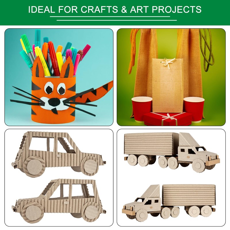 - -[Good Feature]: Durable Corrugated Construction - Each sheet features two side smooth corrugated surface.Perfect for painting, gluing, and wrapping. Corrugated paper is created by laminating two heavy paper sheets together to give it the strength it needs so that you can cut, fold and create decorations with ease. Sufficient quantity to meet your various needs, Perfect for scrapbooks, insert pads, box making, cards, filler and many more!