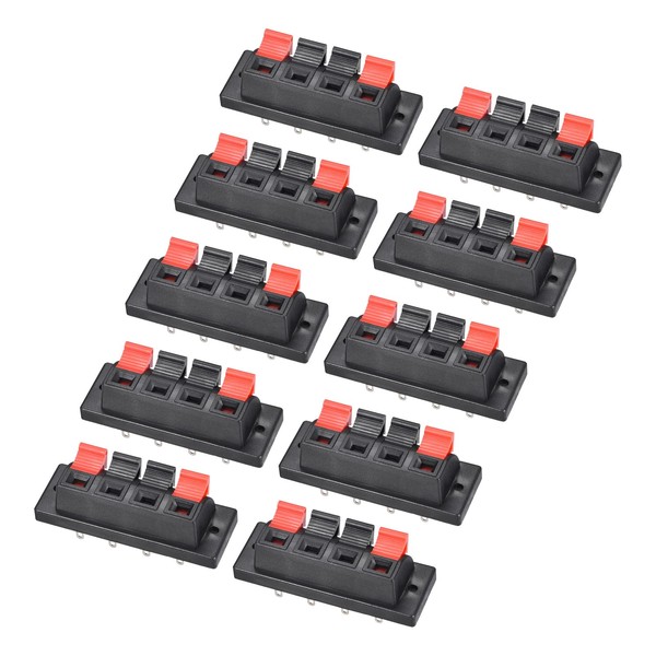 Rebower Spring Push Release Socket 4 Position Speaker Terminal Connector, [for Speaker, Audio Player] - 58mm / Red Black / 10Pcs