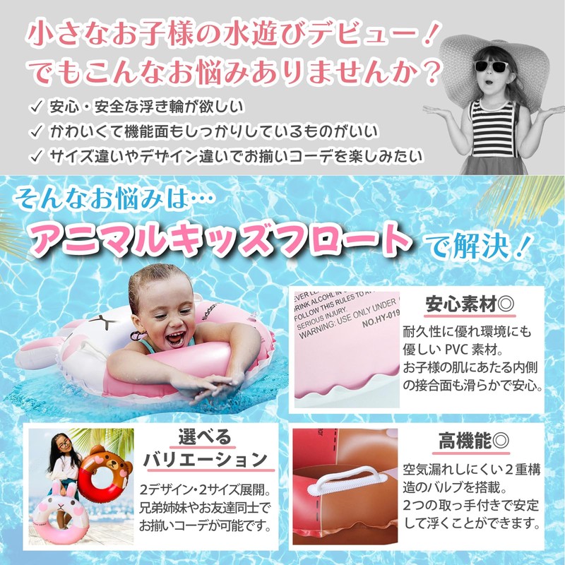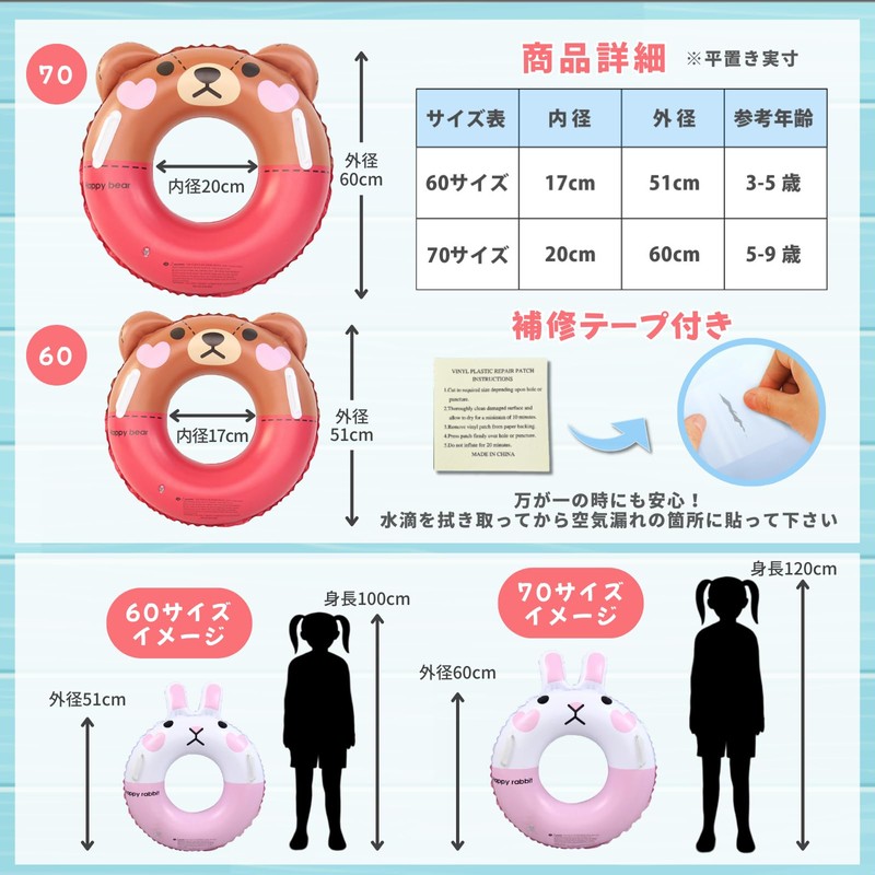 - Cute Healing Animal Float: Grips the hearts of children. Introducing a very cute and functional children's swim ring. The design is available in two types: Happy Bear and Happy Rabbit. You can also match it with different sizes and different designs, so we recommend pairing it with your siblings and friends. It is sure to look SNS. A must have item for creating summer memories