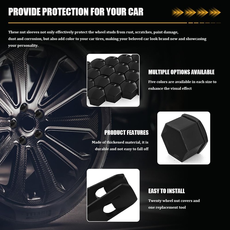 - Wide Compatibility: The design of these black lug nut covers is suitable for 21mm hexagon bolts or nuts on most vehicles. Please check the size of the wheel nuts before purchasing to ensure a perfect match