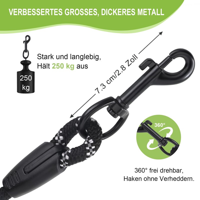 - Bite-resistant tow lead: the robust 5 m long dog lead is made of robust nylon anti-bite climbing rope, the joint uses fine double thread sewing. Our training leash for dogs is more durable than other training leashes. The material of the dog leash is durable and lightweight. The 5 m recall lead for dogs realises the perfect balance between freedom and control.