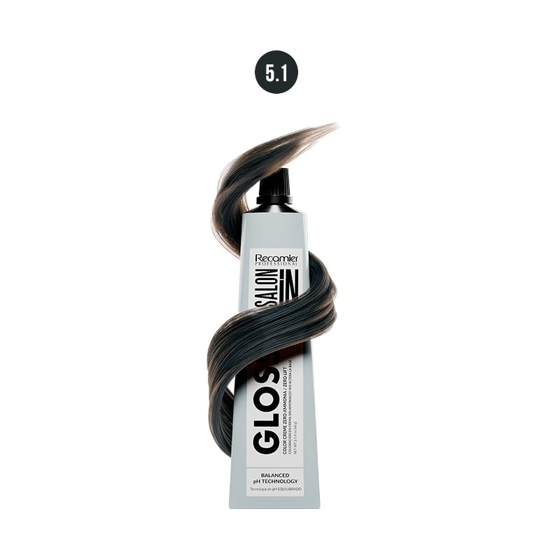 Recamier Professional Salon In Hair Color Creme Gloss Zero Ammonia/Zero Lift 2.1oz (#5.1 Light Ash Brown -Castaño Claro Cenizo)