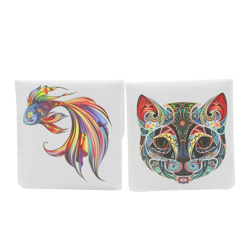 Reccisokz 2 Ashtrays, Fireproof PVC, Odourless, Portable, Compact, Unique Pattern of Rainbow Fish and Psychedelic Cats