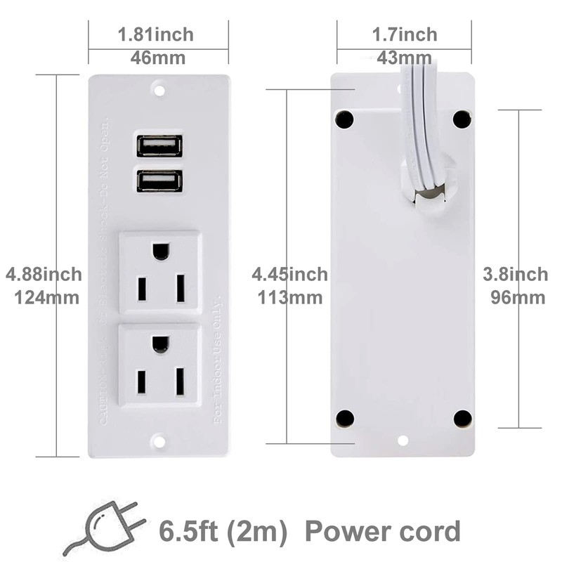 Recessed Power Strip with USB Mountable Power Strip with USB 2 Power Outlets ...