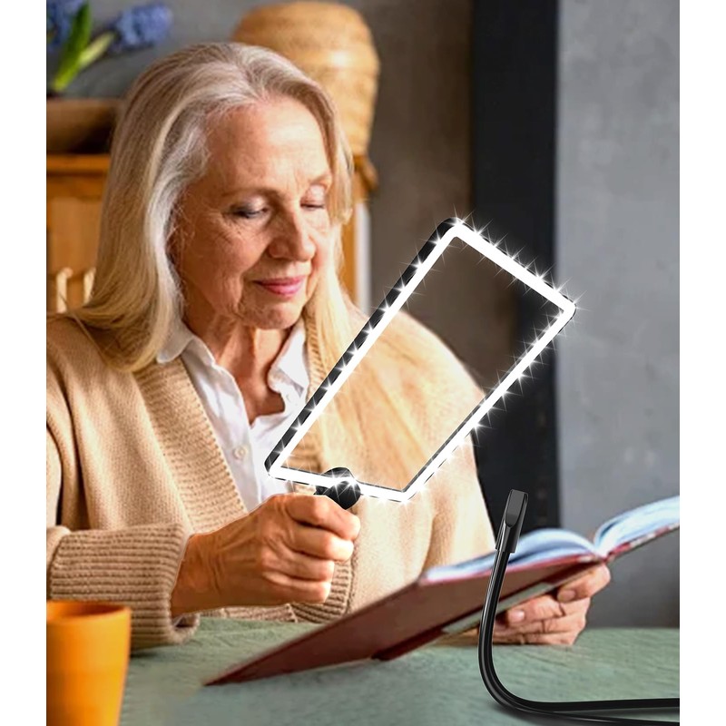 - [LED Lighted Magnifier]: Features 50 Ultra-bright energy- efficient LED lights to help brightly illuminate the viewing area for optimal clarity. Build-in dimmable button controls on and off, also allows you to adjust the brightness from 20% to 100% according to your needs.