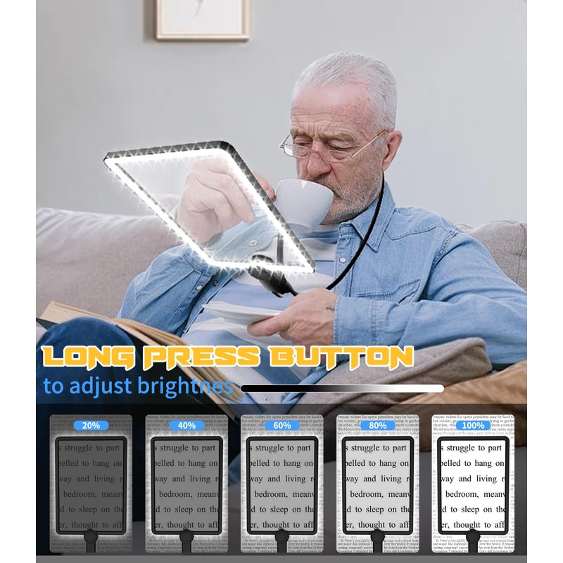 - [Hanging Neck Magnifier - Free Your Hands]: This hands free neck Magnifying Glass with soft silica gel tube flexible gooseneck, it allows you to adjust the angle follow your needs. The detachable magnetic suction design realize more possible: Handheld / Desktop. Giving life more choices!