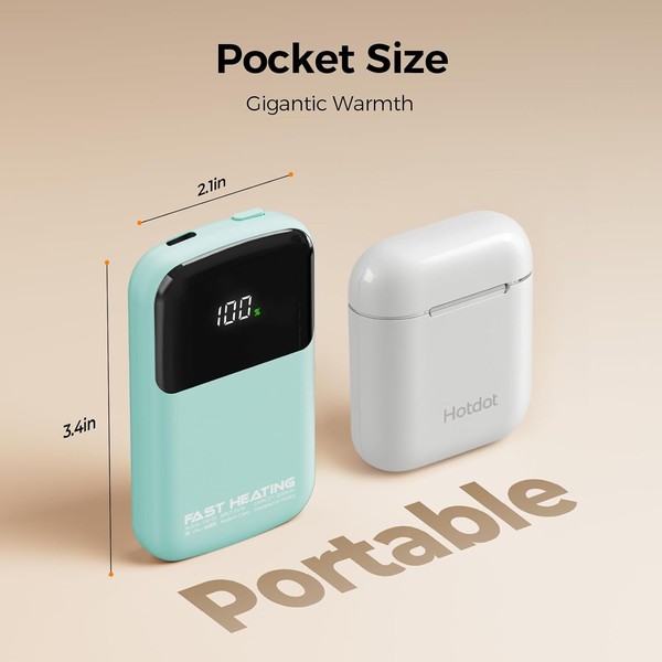 Rechargeable AI Hand Warmers – 4-Pack Portable Electric Hand Warmers with LED Display, Adjustable Temperature, Fast Heating – Gift Box Included – Ideal for Men, Women, Hunting, Camping (Cyan)
