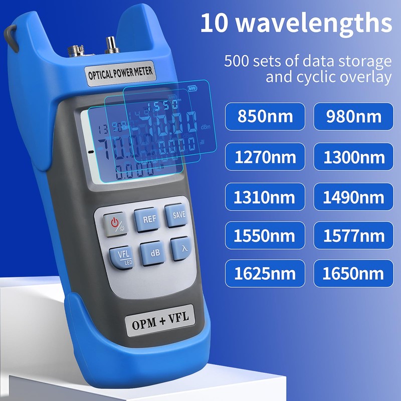 - The high-precision A-C710B rechargeable optical power meter all-in-one machine is equipped with 10 wavelengths, 500 sets of data storage, and can also view data at any time with cyclic coverage