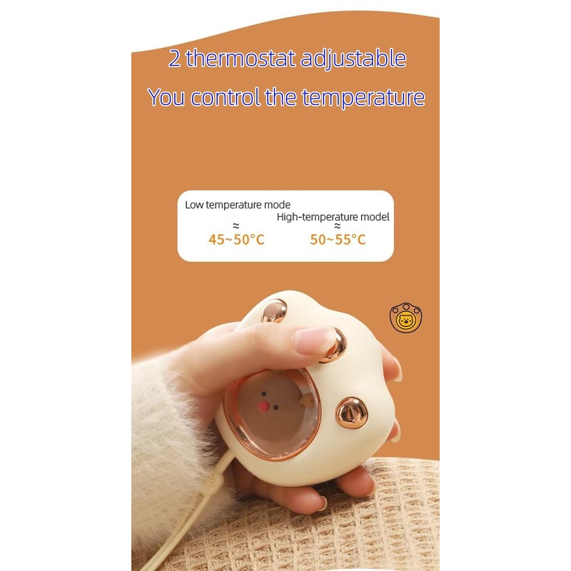 Stay cozy and warm this winter with our adorable rechargeable hand warmer! Shaped like an adorable cat paw, this portable and reusable hand warmer features a cute design that will brighten your day. With 12 hours of long-lasting heating and colorful lights, you can keep your hands toasty and comfortable even in the chilliest weather. Perfect for kids, women, and men alike, this hand warmer is a must-have accessory for those cold winter days. Compact and easy to carry, it's the perfect companion for outdoor activities, commuting, or simply lounging at home. Embrace the warmth and cuteness with this delightful hand warmer.