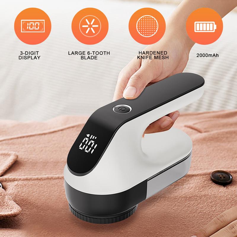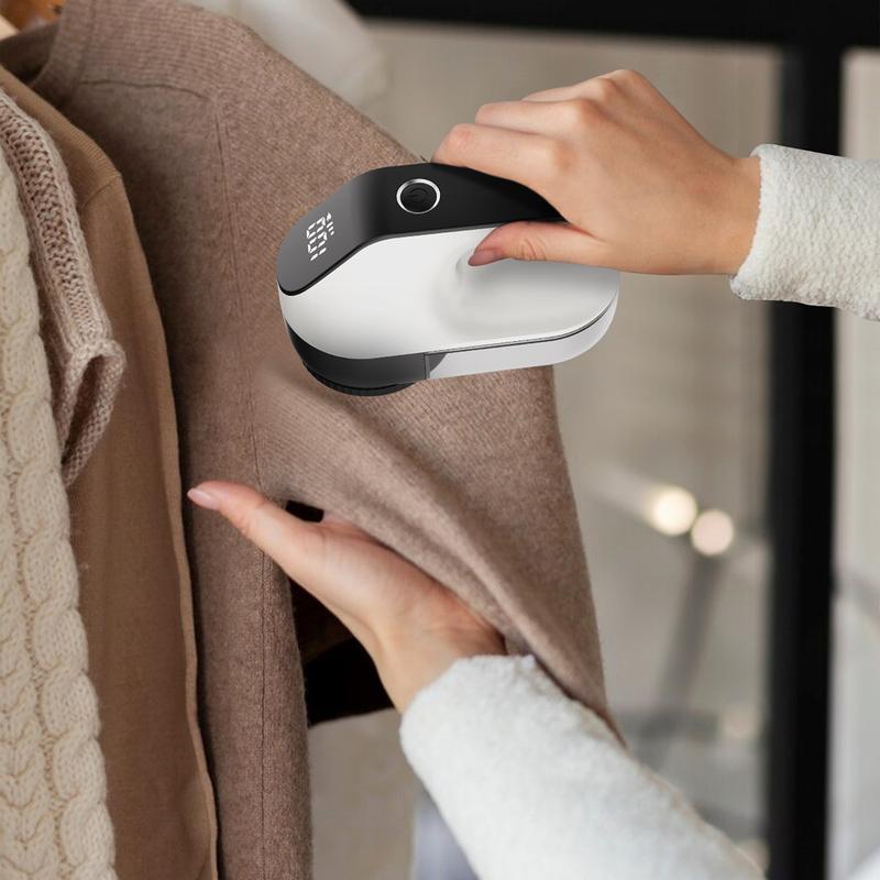Rechargeable Fabric Shaver with 4 Replaceable Stainless Steel 6-Leaf Blades, Lint Remover with 3-Speed Settings & LED Display, Efficient Sweater and Lint Shaver for Clothes, Removing Fuzz, Lint Balls, Pills and Hairballs