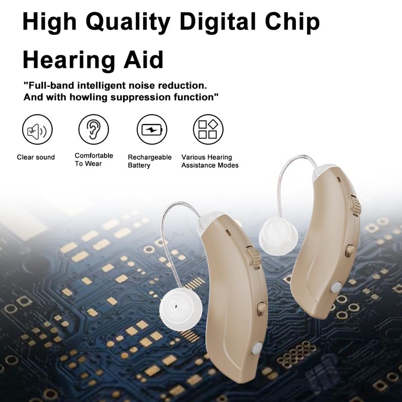 - 2 in 1 Bluetooth Hearing Aids: Rechargeable digital hearing aids reach high quality sound with background noise cancellation function by 16-channel technology. The latest Bluetooth 5.3 technology can be compatible with IOS devices or Android devices. Bluetooth hearing aid seamless connecting hearing aid mode and Bluetooth mode, easily switch between watching TV, making phone calls, listening to blogs and so on