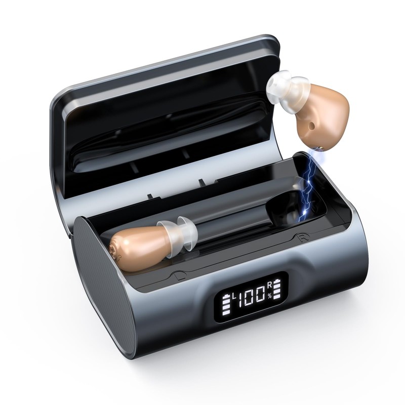 Rechargeable Hearing Aids for Seniors with Hearing Loss, In-the-ear Hearing Amplifiers Devices with Noise Cancelling, Long Lasting Use with Large Capacity Charging Case, Beige