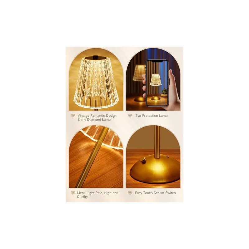 - ELEGANT DESIGN: Vintage-inspired crystal glass shade with diamond pattern creates a romantic ambiance, mounted on a premium gold metal base measuring 11.8 inches in height