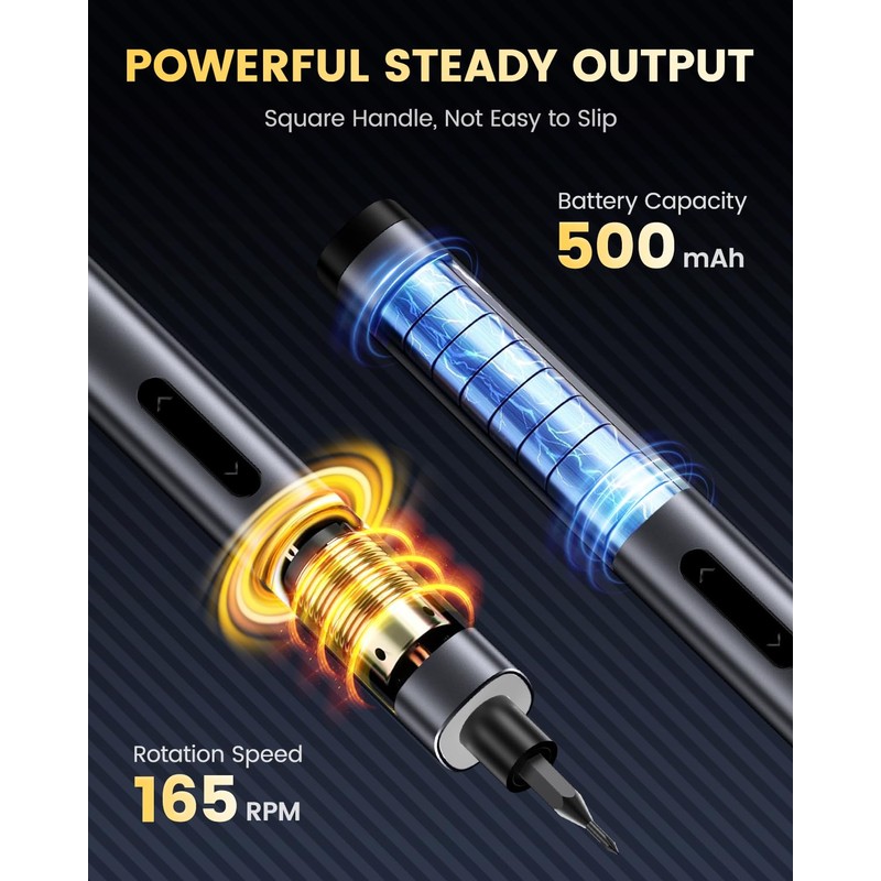 - 馃敥馃敥Advanced appearance design: The portable screwdriver set adopts a modern innovative design, combining square and round shapes, exuding a high-quality and exquisite beauty. Electric screwdriver for PC not only provide precision, efficiency and beautiful appearance, but can also turn core extraction screws, and the "click" turning sound makes people more happy to repair.