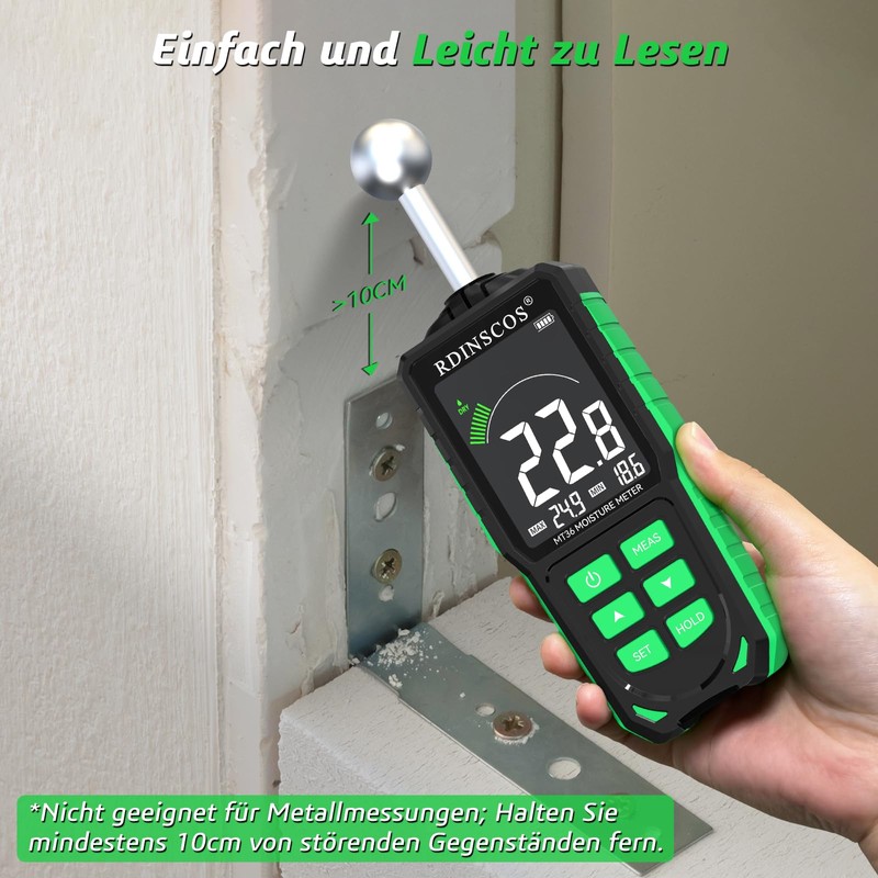 • ✅Tips 1: Wipe the measured material surface dry and clean for best results. In addition, the material to be measured (walls, masonry and wood) is not stacked or stored on wet materials.