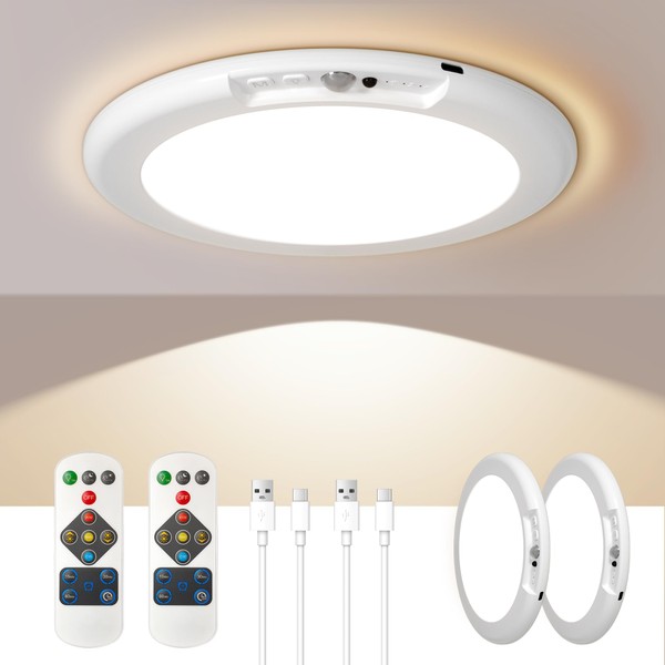 Rechargeable Motion Sensor Ceiling Light, Wireless Battery Operated Ceiling Light, Motion Activated Closet Light with Remote, Magnetic Dimmable Timming, Shower Light for Closet, Bathroom, Pantry, Shed