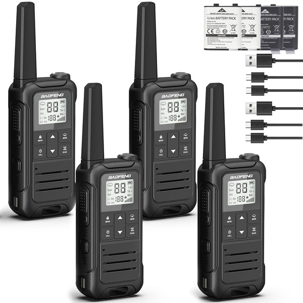Rechargeable Walkie Talkies Long Range for Adult, Baofeng F22 Handheld FRS Radio Walkie Talkies 4 Pack Portable 2 Way Radio USB-C Cable NOAA Weather Radio VOX Walky Talky for Camping Hiking