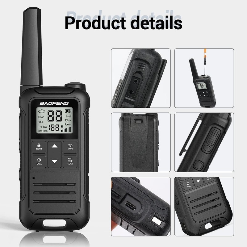- 【Long time standby and durability】 The walkie talkie is equipped with 1400mah battery, which supports long time standby. The charging port adopts Type-c charging, which is more convenient and can be charged through PC, car or charging bank. So you don't need to buy and discard batteries repeatedly.