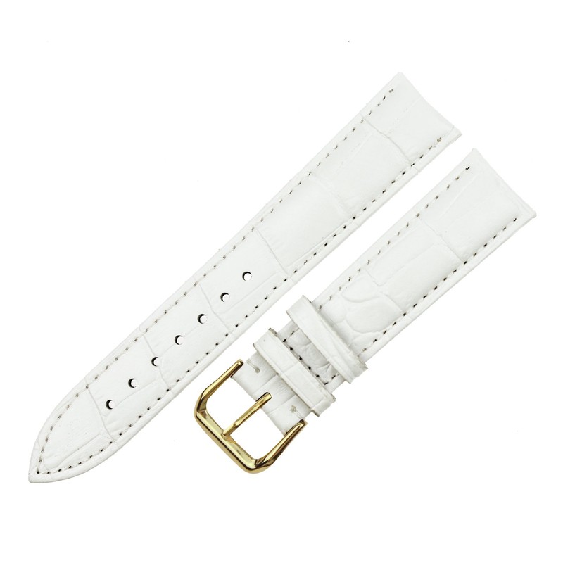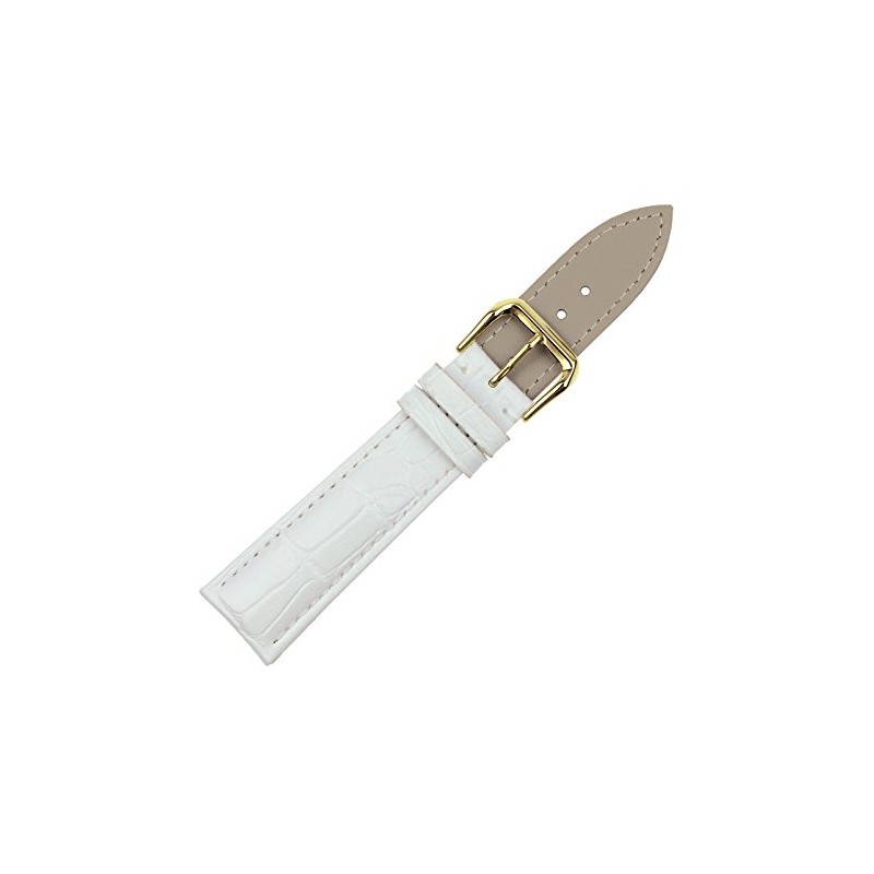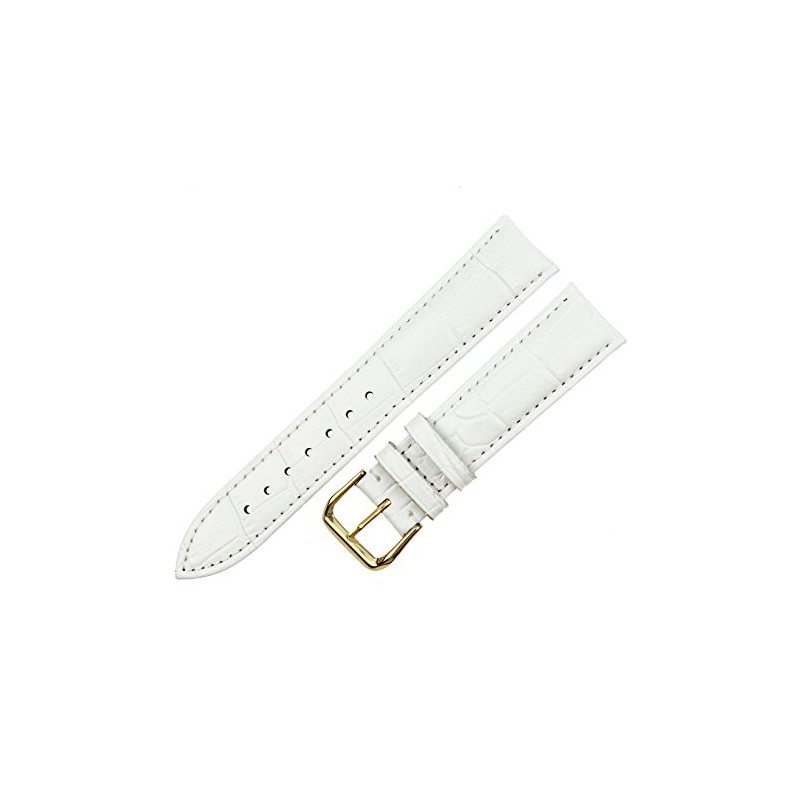 RECHERE Alligator Crocodile Grain Leather Watch Band Strap Gold Pin Buckle Color White (Width 19mm)