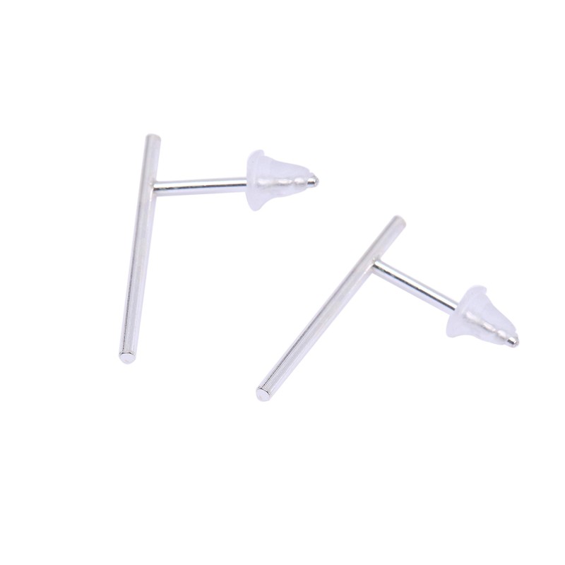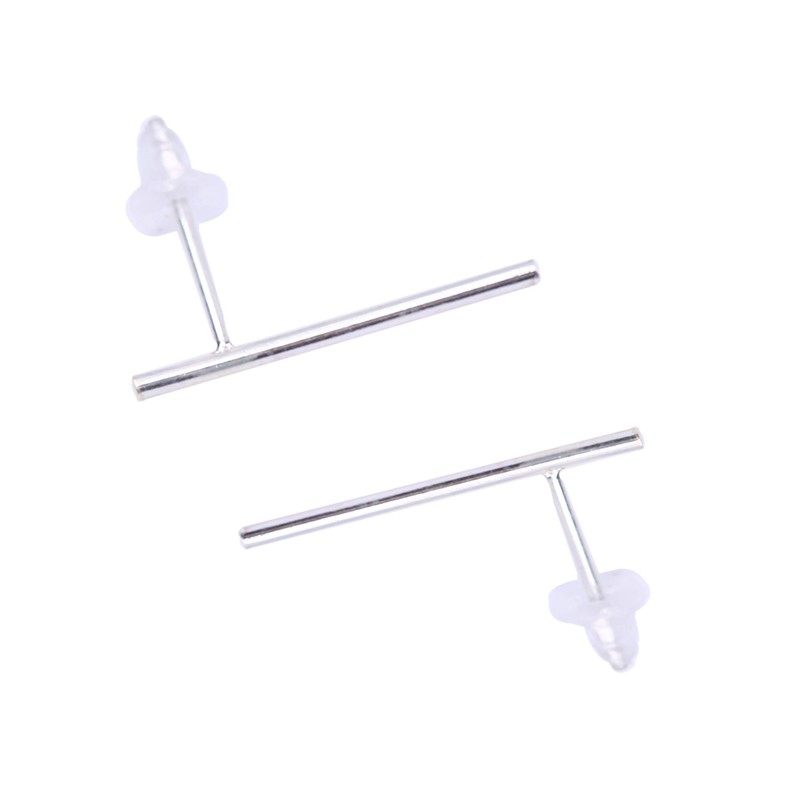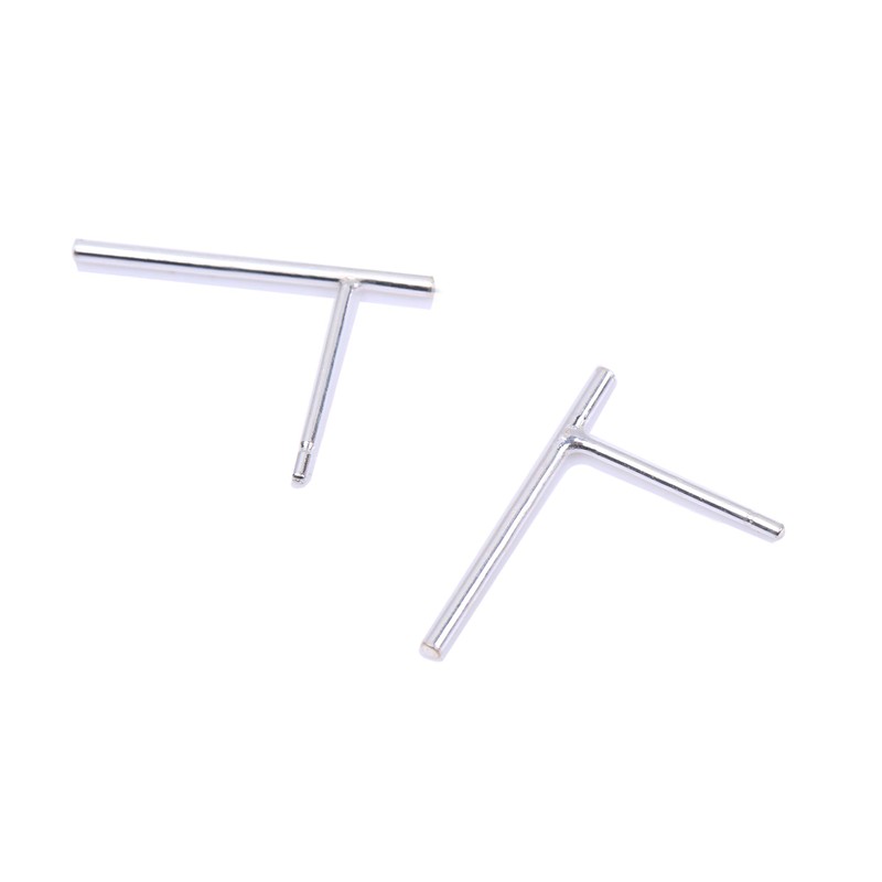 Rechoice Pendientes de tuerca de plata de ley con diseño de línea de palo simplificada