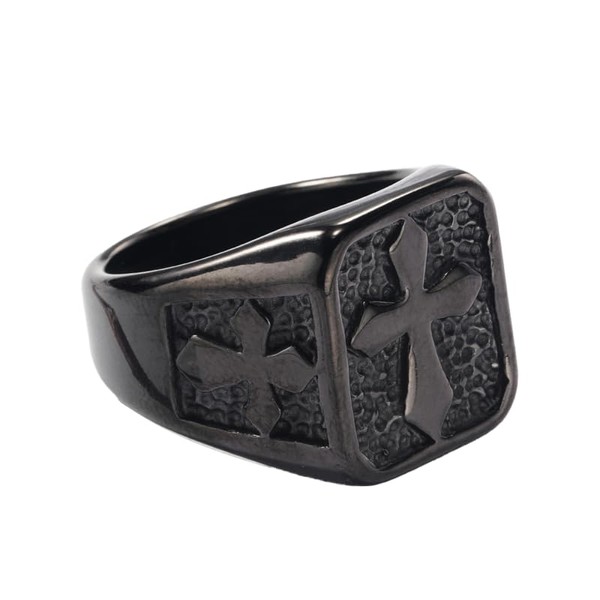 REchoLI Cross Ring for Man,Stainless Steel Black Cross Ring Bold Square Band with Cut Out Cross Motifs, Gothic Style Statement Jewelry Size 8-12 (11)