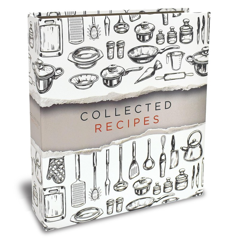 - COMPLETE SET - 8.5 x 9.5-inch 3-ring binder, 50 clear 2-pocket protector sheets, 100 double-sided recipe cards, and 12 divider pages featuring printed tabs of the most popular recipe categories.