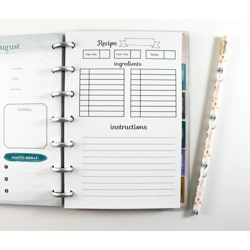 • CONVENIENT: Plan your meal and keep your recipes organized with these recipe inserts, which are printed and pre-punched for your planner.