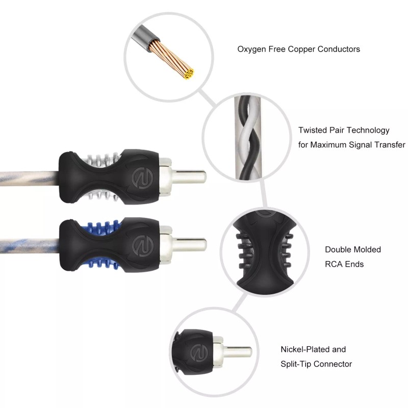 Recoil RCI220 100% Oxygen Free Copper 20ft 2-Channel RCA Audio Cable, Twisted Pair with Noise Reduction