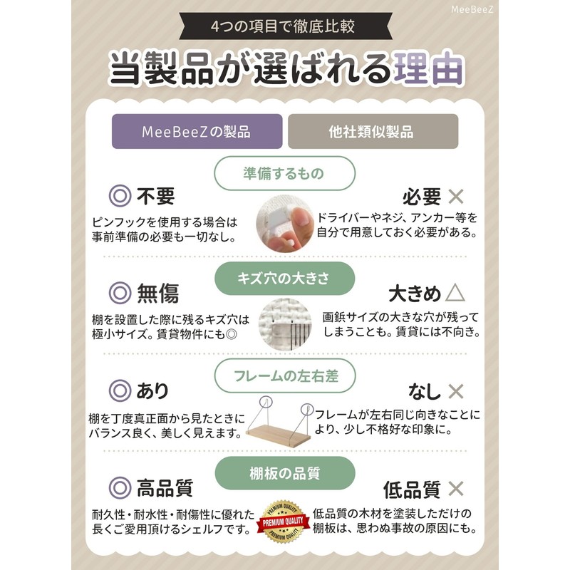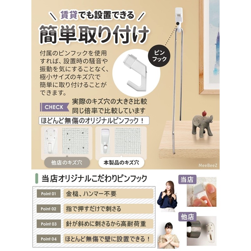 This simple wall shelf is made with a focus on the durability and waterproofing of wood. With a pin hook, it is easy to install by anyone. What's more, it will hardly damage your walls! You can install it in rental without issue - Product Features: No pre-preparation required: When using a pin hook, there is no tools such as a screwdriver. <