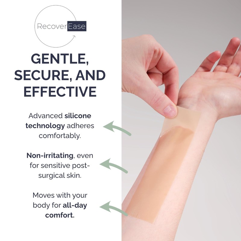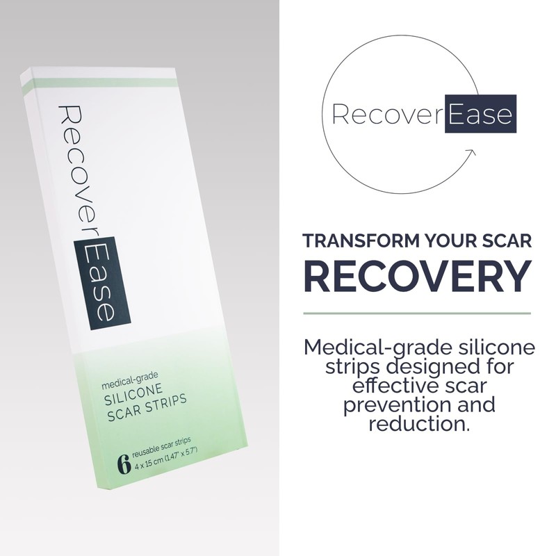 RecoverEase - Silicone Scar Strips – 12 Pack of Individually Wrapped & Reusable Medical Grade Silicone Scar Tape for Mastectomy, C-Section, Tummy Tuck, Burns & More
