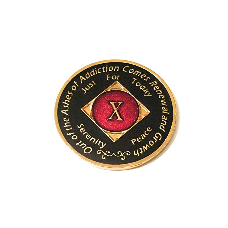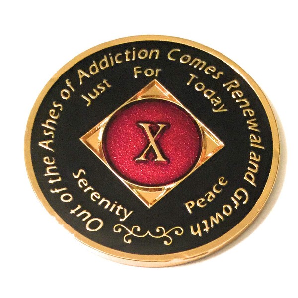 Recovery Line 10 Year NA Black and Red Tri Plate Medallion -Chip, Coin, Token