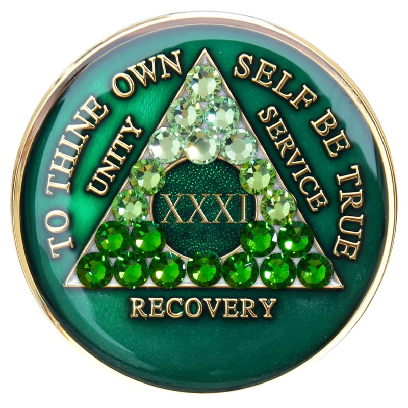 Recovery Mint Sobriety Chip AA Transition Green Cyrstallized (31 Year)