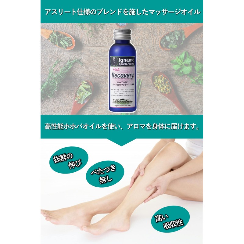 Recovery Pink Massage Oil, Recovery Oil, 100% Jojoba Oil, After Racing, Exercise, Before Bedtime, Relaxing, Genuine Product, 3.4 fl oz (100 ml) Aroma Oil