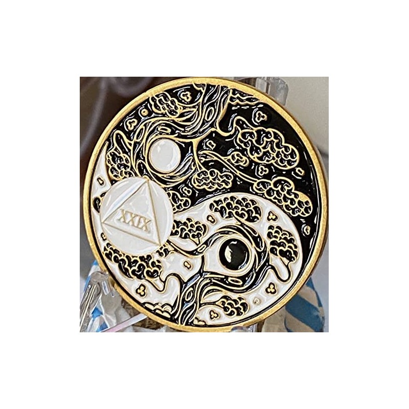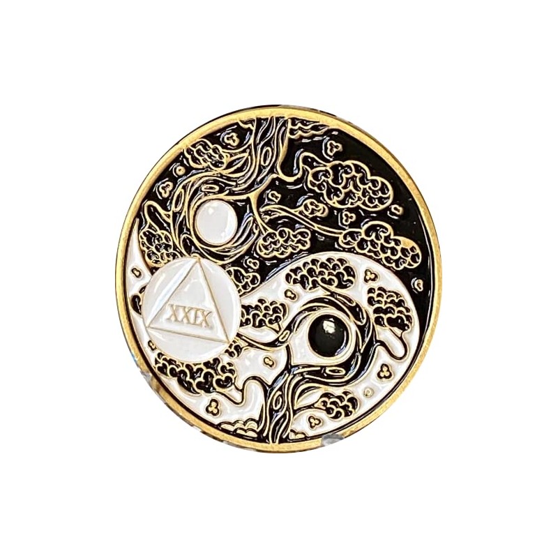 RecoveryChip 29 Year AA Medallion Sakura Tree Cherry Blossom Ying Yang Black and White Serenity Prayer Medallion