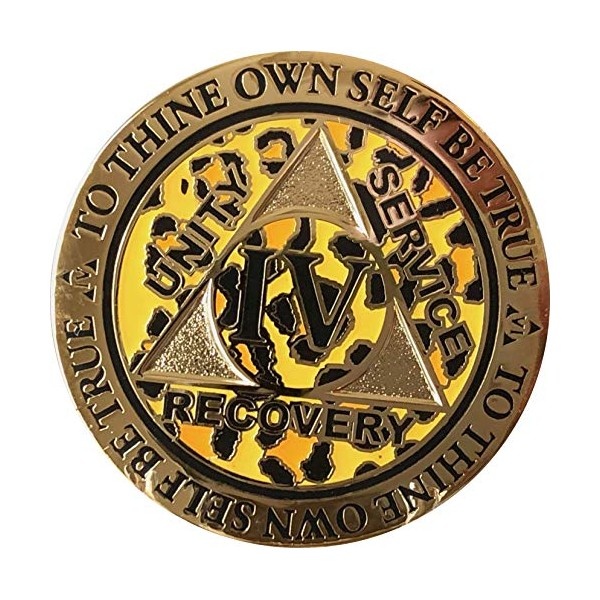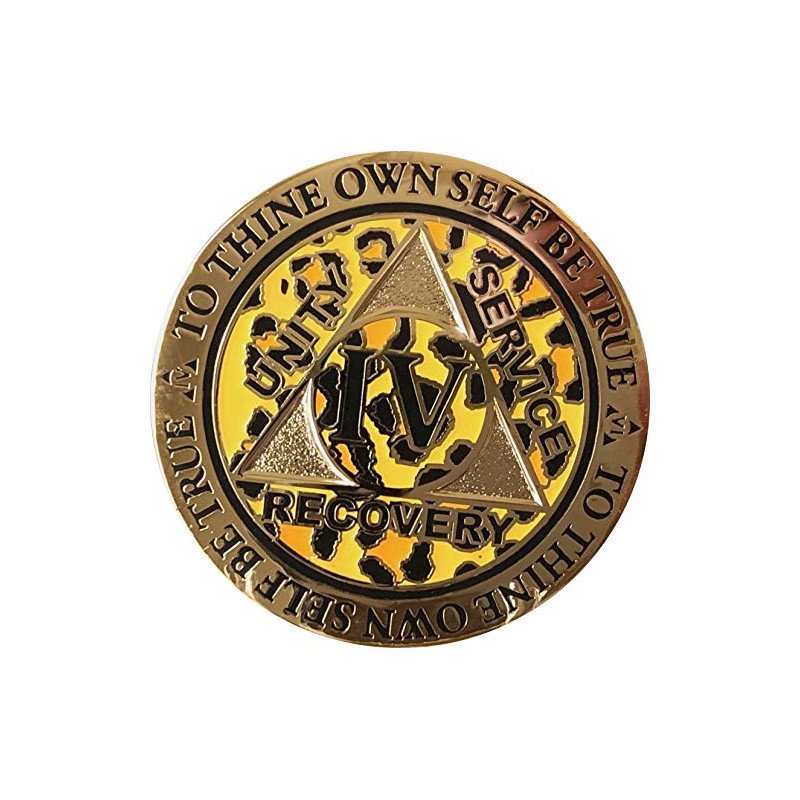 RecoveryChip 4 Year AA Medallion Reflex Leopard Gold Plated Animal Print Chip IV