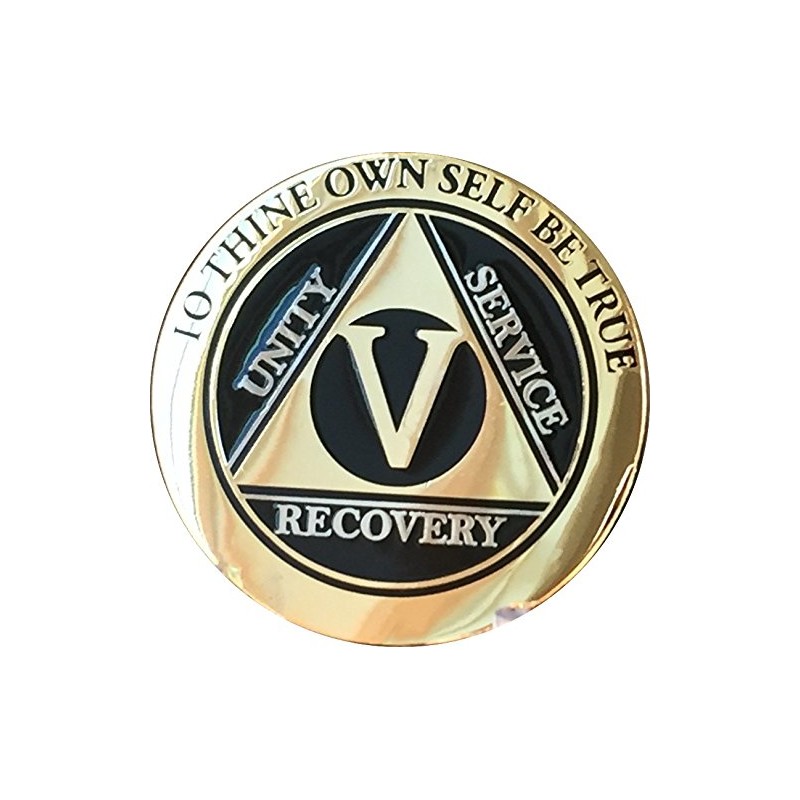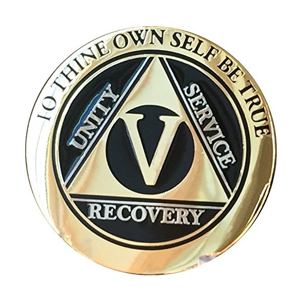 RecoveryChip 5 Year AA Medallion Elegant Black Gold Silver Bi-Plated Alcoholics Anonymous Chip