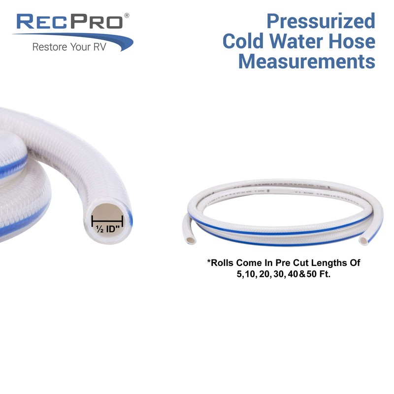 RecPro 1/2" RV Pressurized Cold Water Line | Flexible | Non-Toxic | Vinyl | Heavy Duty | Length Options (30 Feet)
