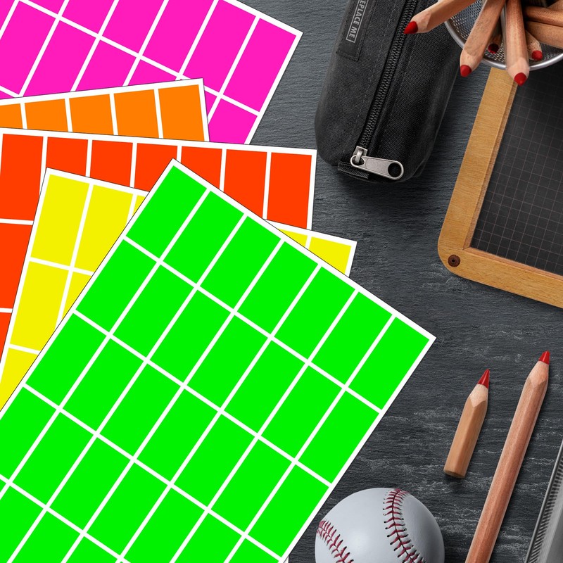 Rectangle Fluorescent Colour Coding Stickers, 700 Pack, 40 mm x 19 mm, 5 Neon Colours (Red, Magenta, Yellow, Orange, Green)