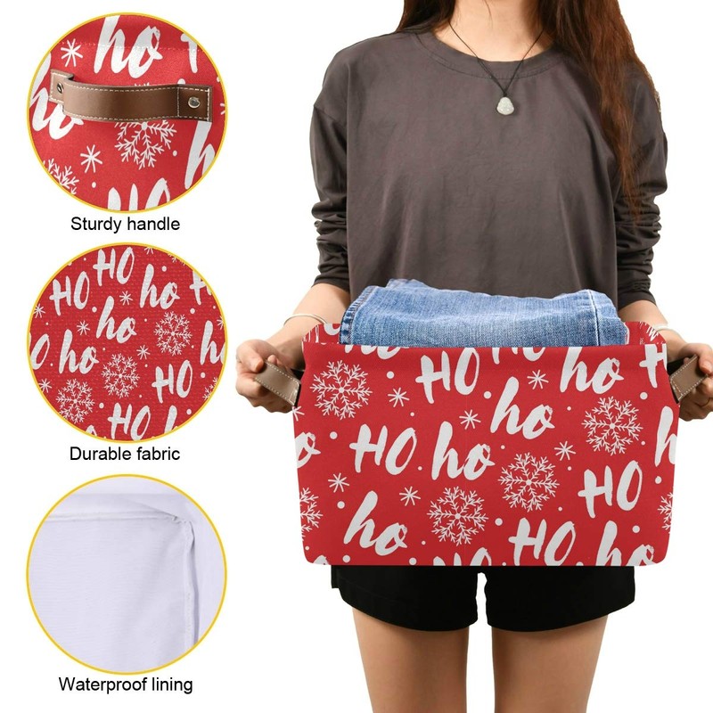 Rectangular Christmas Storage Bin Santa Claus Snowflake Christmas Basket with Handles - Nursery Storage, Laundry Hamper, Book Bag, Gift Baskets