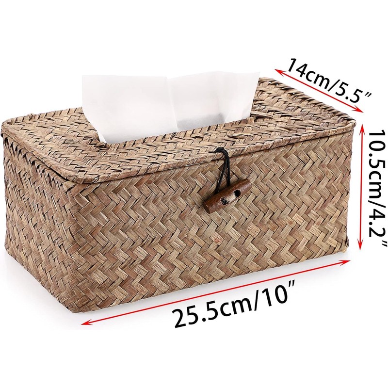 - High-Quality Material: Crafted from handwoven seagrass and reinforced with a sturdy metal frame, this tissue box cover is both durable and stylish. The natural seagrass material is perfect for home use, offering a blend of functionality and timeless appeal.