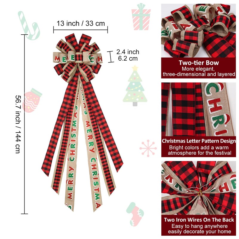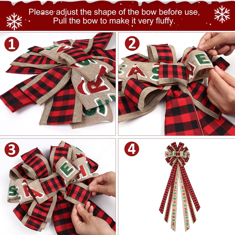 • 【Design Concept】Christmas Tree Topper Christmas Bows are manually made from red plaid ribbons. These Christmas bows are bright, simple, elegant, and with winter, Christmas atmosphere pattern design, suitable for Christmas Indoor Outdoor decor
