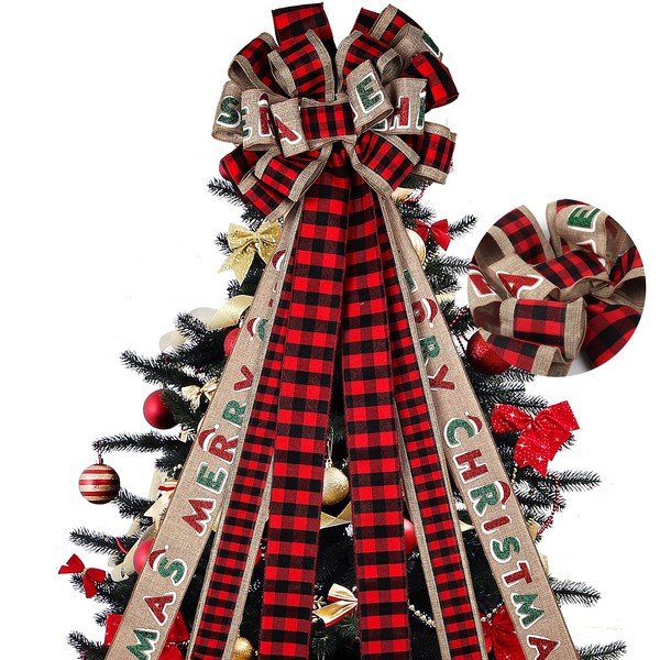 RECUTMS Large Christmas Tree Topper Christmas Bows Red Burlap Bow Christmas T...