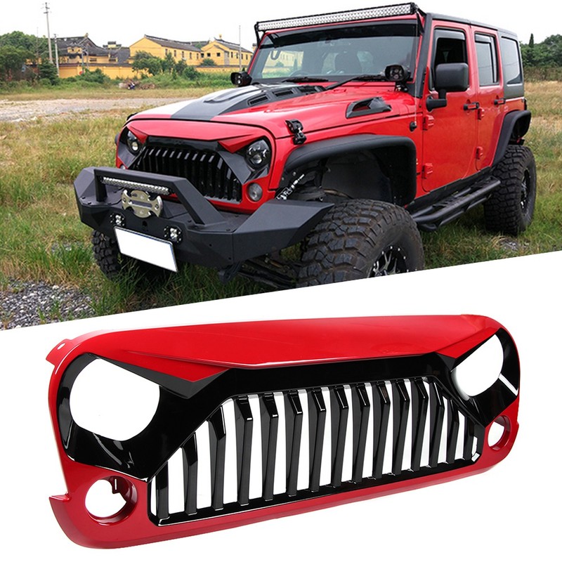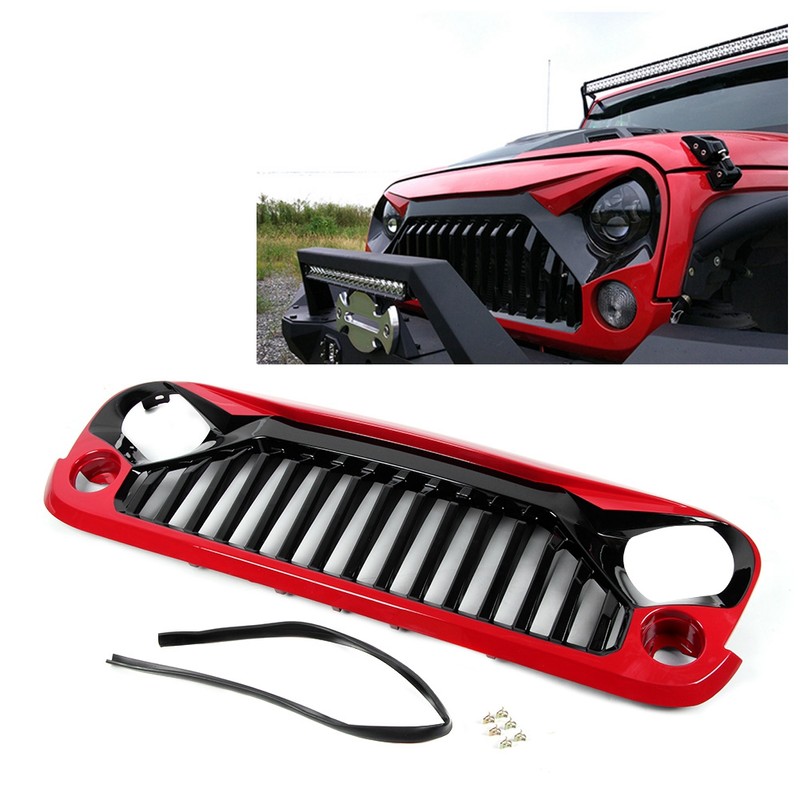 Red and Black Front Grille Hood Fits for Jeep Wrangler JK 2007-2017