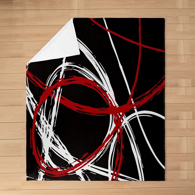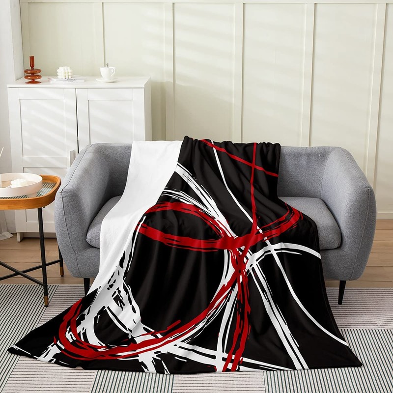 Red and Gray Black White Fuzzy Blanket Kids Modern Abstract Geometric Bed Throw Blanket Women Men Trippy Swirl Decor Fleece Throw Blanket Microfiber Stripe Line Bedroom Throw 50"x60"