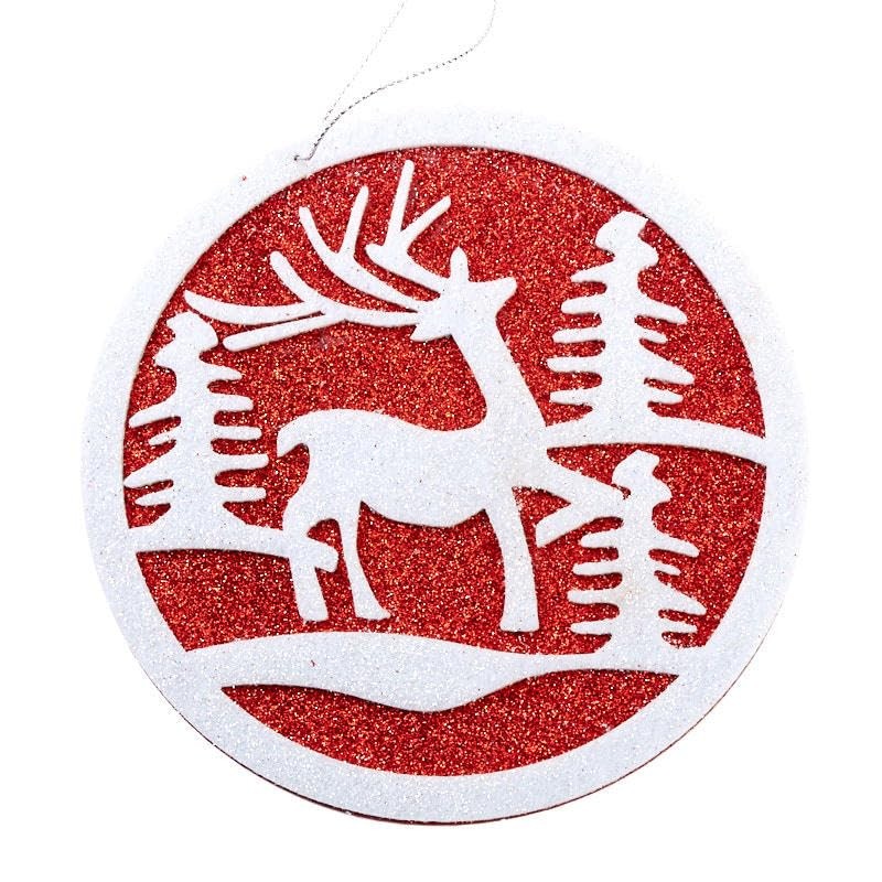 Red and White Glittered Felt Reindeer Ornaments Set of 3 by Factory Direct Craft - Christmas Decorations for Wreaths, Trees and Holiday Displays - 5-7/8 Inches