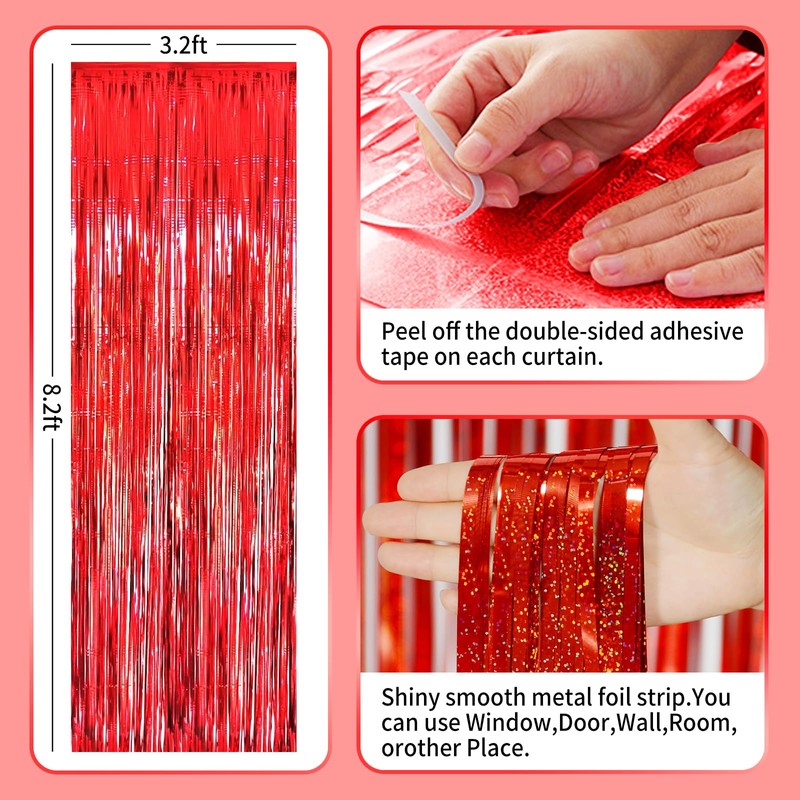 - 【Satisfaction Guarantee】If you have any questions about the usage or quality of our red tinsel foil fringe curtains, please contact us at your convenience, and we would love to help you.