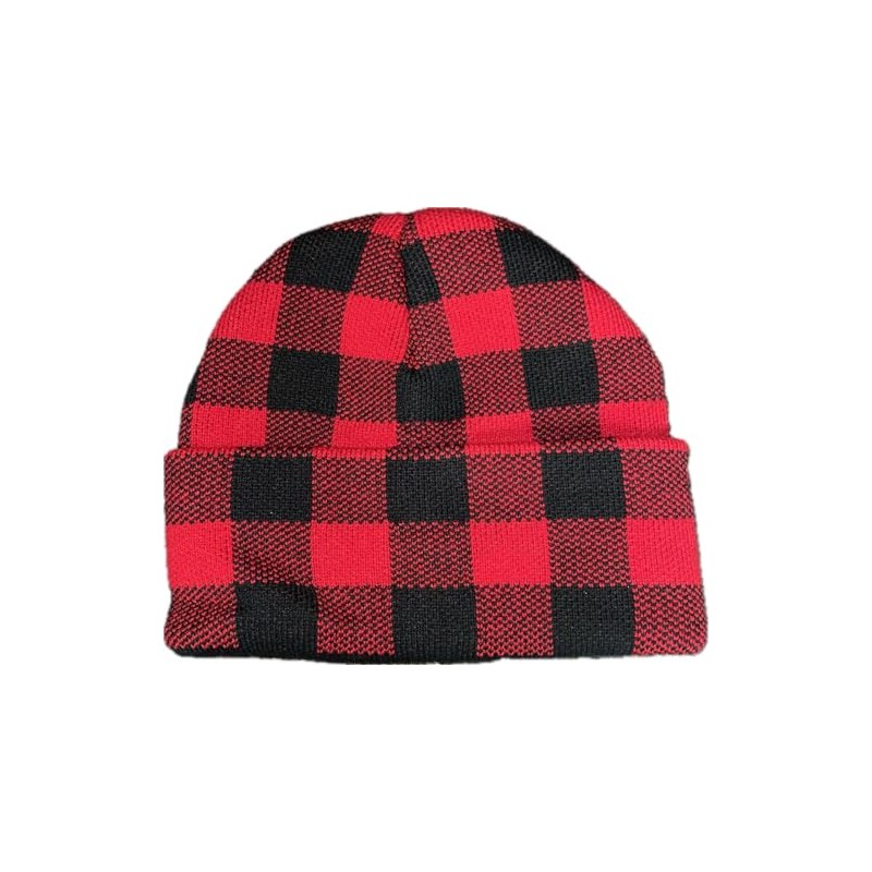 Red Black Buffalo Plaid Flannel Look Cuffed Long Winter Watch Stocking Cap Hat Up North Cabin Rustic Lumberjack Checkered Checked