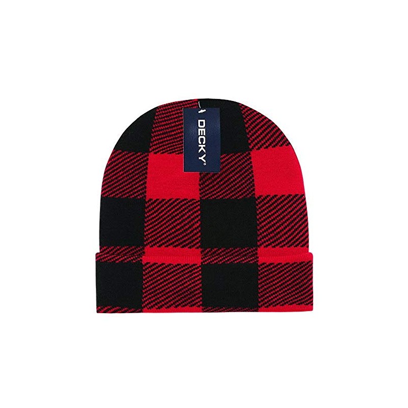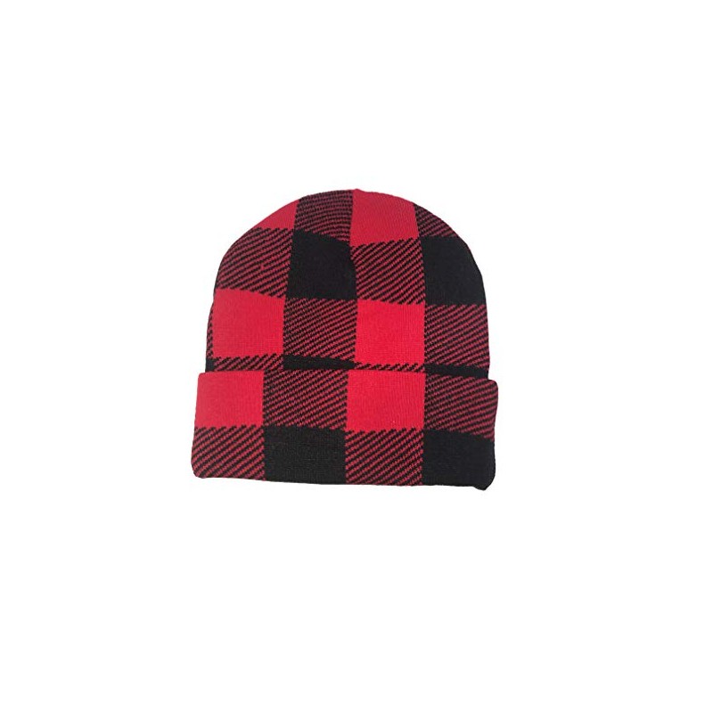 Red Black Buffalo Plaid Flannel Look Cuffed Long Winter Watch Stocking Cap Hat